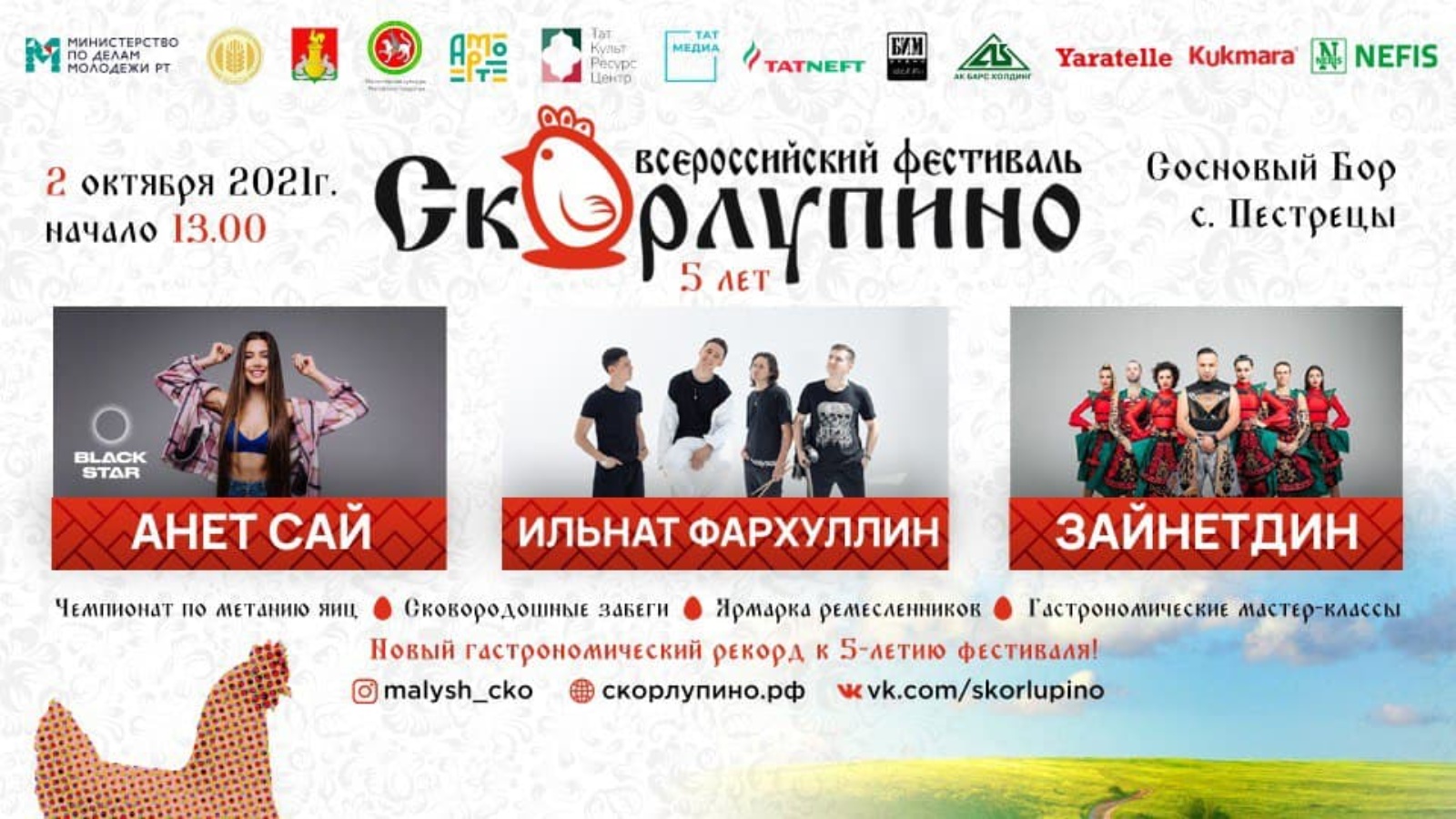 «Скорлупино» – это яркое, фееричное, уникальное по своему формату событие. Фестиваль нацелен на вовлечение сельской молодежи Татарстана в экономическое и социальное развитие своих территорий и укрепление дружеских связей между молодежью Республики Татарстан.