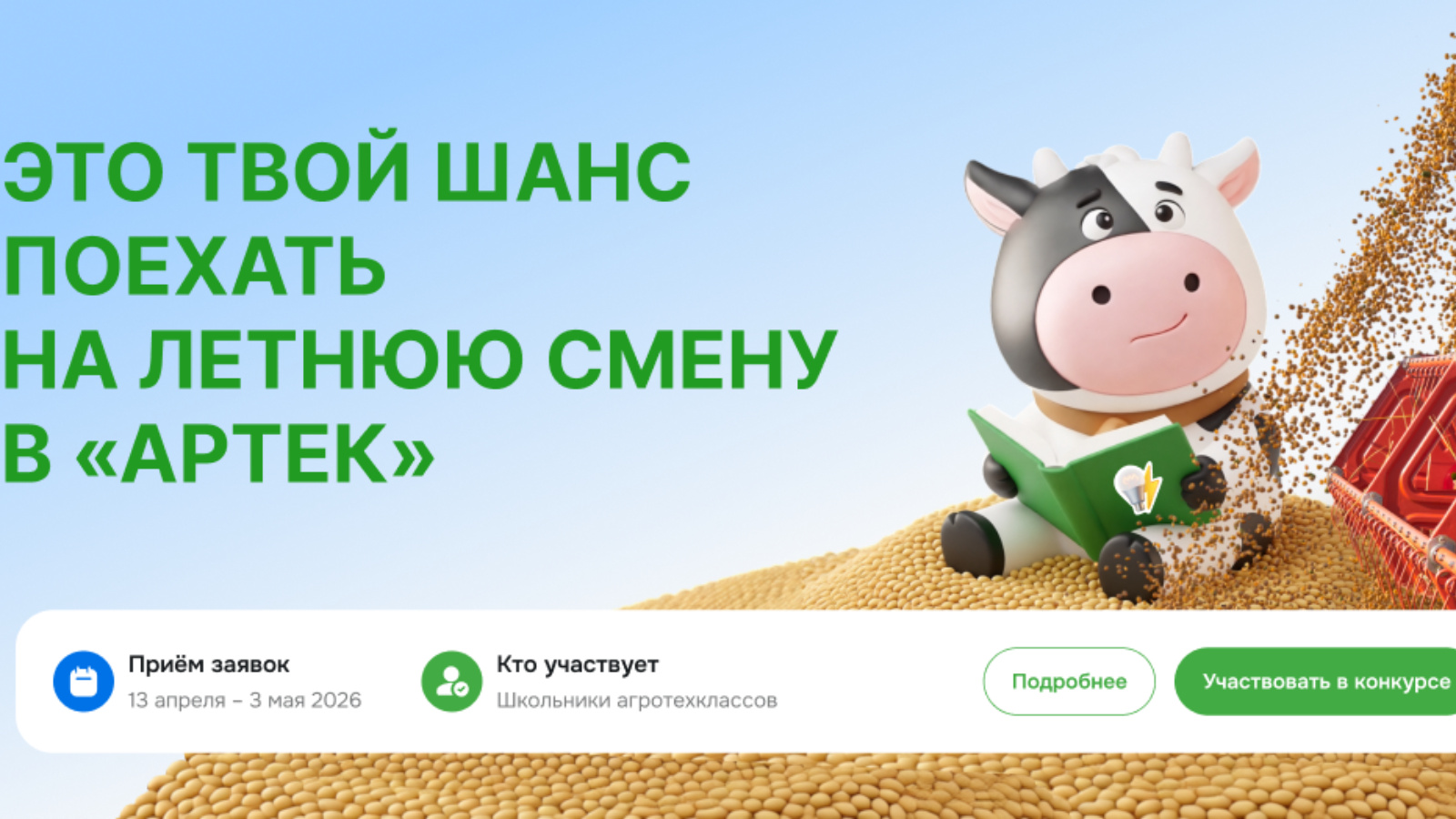 РСХБ совместно с Международным детским центром «Артек» запускают увлекательный конкурс для школьников — отличная возможность проявить себя в сфере агротехнологий и получить путёвку на летнюю агросмену!